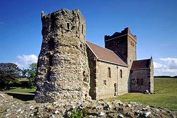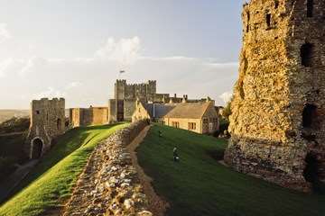 Within the walls of the medieval castle stands a much older building, dating from a time when Britain was an outpost of the Roman Empire. The Romans built a lighthouse here after they invaded in AD 43, to guide ships into the harbour.